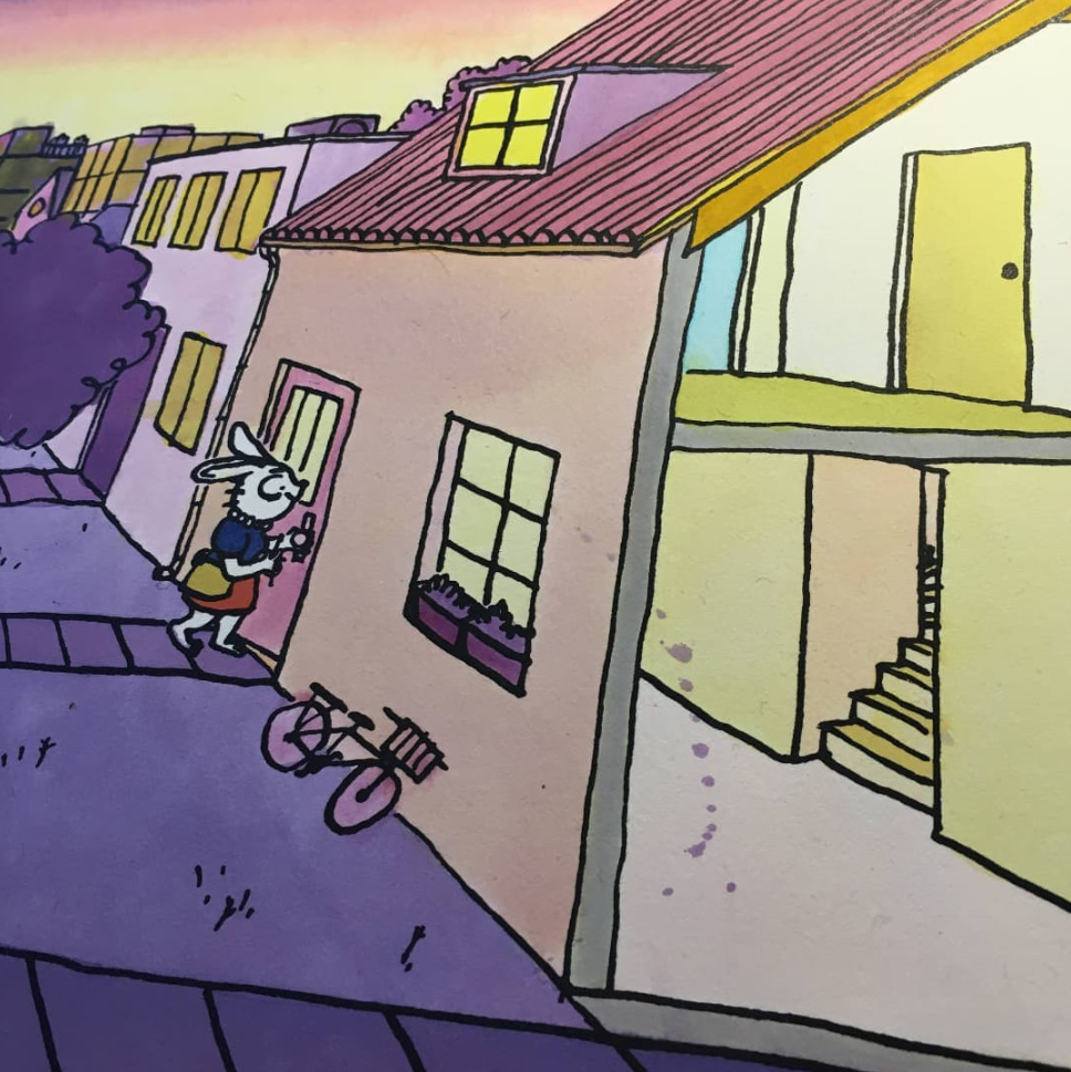 « Qu’il est bon de rentrer chez soi se dit madame Lapin qui ne se s’attendait pas à trouver UNE ×℅#* D’ÉCLABOUSSURE DE COLOREX au beau milieu du salon !«
